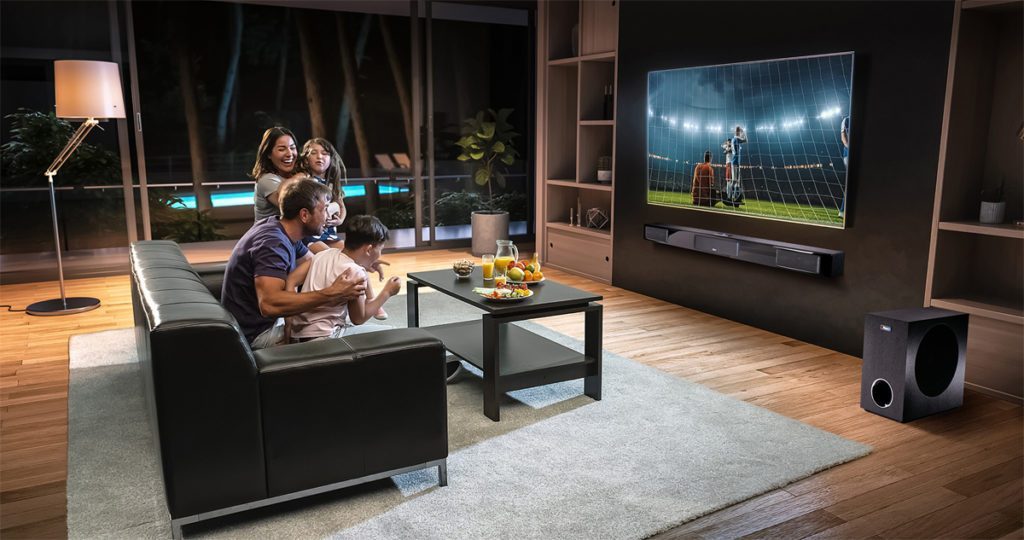 So genießt ihr nicht nur Filme und Serien mit perfektem Sound, sondern auch Games, DVDs, Blu-rays oder alles, was ihr per Apple TV, Amazon Fire TV oder mit anderen Set-Top-Boxen empfangt. Besser noch: Wenn euer TV-Gerät HDMI-CEC bietet, und das tun eigentlich alle aktuellen Modelle, dann steuert ihr die Lautstärke des Systems ganz bequem mit der TV-Fernbedienung. Sollte das nicht möglich sein, nutzt ihr einfach die mitgelieferte System-Fernbedienung.