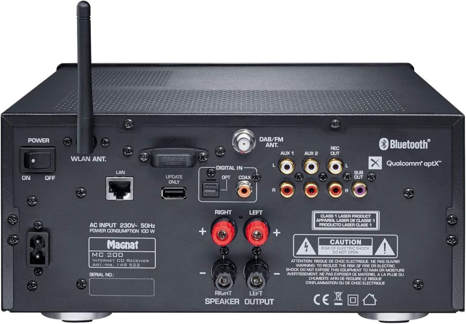 Der Magnat MC 200 bietet neben der zeitgemäßen Medienvielfalt von CD, Bluetooth, UKW und DAB+ einen umfangreichen Zugang zu Musik via WLAN oder Netzwerkkabel. Er beherrscht Spotify, Internetradio sowie die Wiedergabe von Musik aus dem heimischen Netzwerk (DLNA). Die eingängige Steuerung all dieser Funktionen übernimmt die brandneue MAGNAT STREAMING APP für iOS und Android. Weiterhin werden gängige Formate wie MP3, WMA, AAC und FLAC unterstützt.